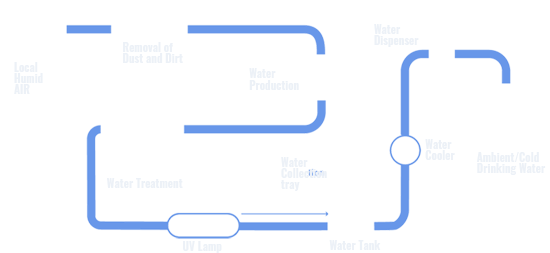The Atmos unit produces pure drinking water by drawing inambient air, filtering it meticulously, and harnessing its humidity through engineered technology.